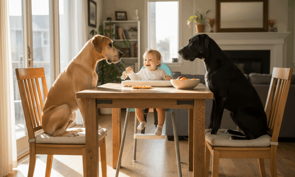 🐾 Great Danes Charm as Adorable Baby Nannies: These gentle giants are winning hearts as they lovingly watch over babies with patience, calm, and surprising tenderness. It’s a beautiful reminder that protection doesn’t always roar — sometimes it softly stands guard with a wagging tail.